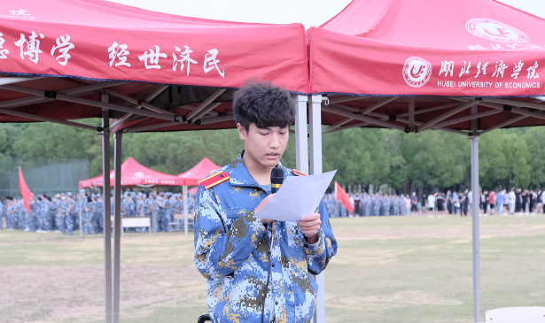 新生代表孙文冲在发言中谈到,应牢记经院学子的使命与担当,在军训活动中听从指挥、团结一致、不畏艰难、遵守纪律。在未来的学习中刻苦风度、继承优良传统,争做德智体美劳全面发展的社会主义建设者和接班人。