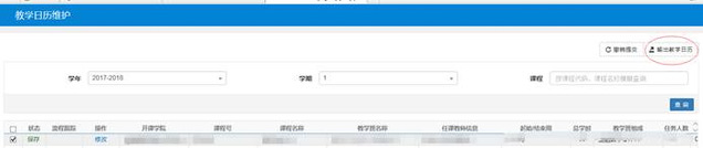 8.打印:在“教学日历维护”页面,在需打印的课程名称前打勾,然后右上方点击“输出教学日历”后进行打印。