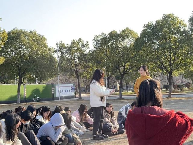 活动进入第二项:分享寒假返乡见闻。现场开始了击鼓传花小游戏,以辅导员的击掌作为鼓声传递乒乓球,掌声结束时,接到乒乓球的同学则根据纸条的问题分享自己的寒假见闻、校园生活以及兴趣爱好等。