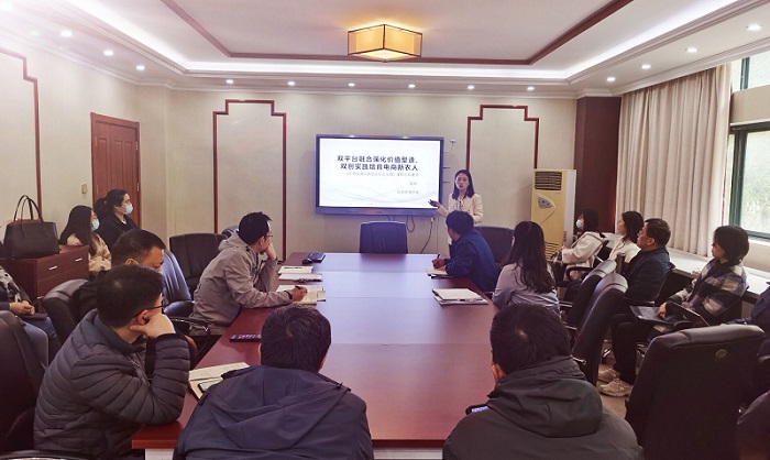 2023年4月6日,公司在知行楼二楼学术研讨室开展教与学论坛活动,副经理彭玲作题为“双平台融合强化价值塑造、双创实践培育电商新农人——《农村电商创新创业社会实践》课程思政建设”专题报告,全院教师参加活动,公司党委书记孙静月主持。