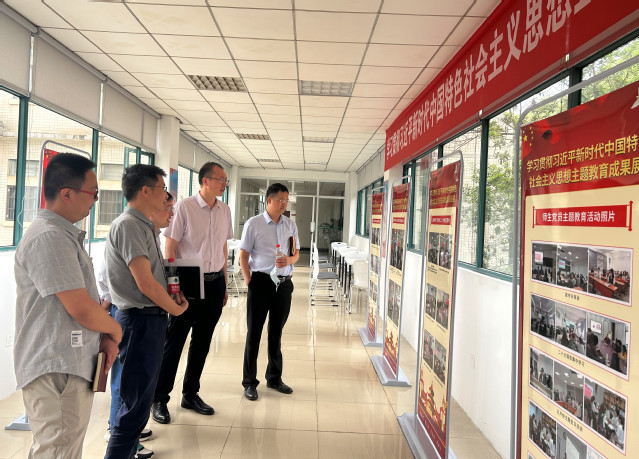 仪式结束后,刘文平、田全喜和与会师生一道移步知行楼连廊,参观公司主题教育成果展。