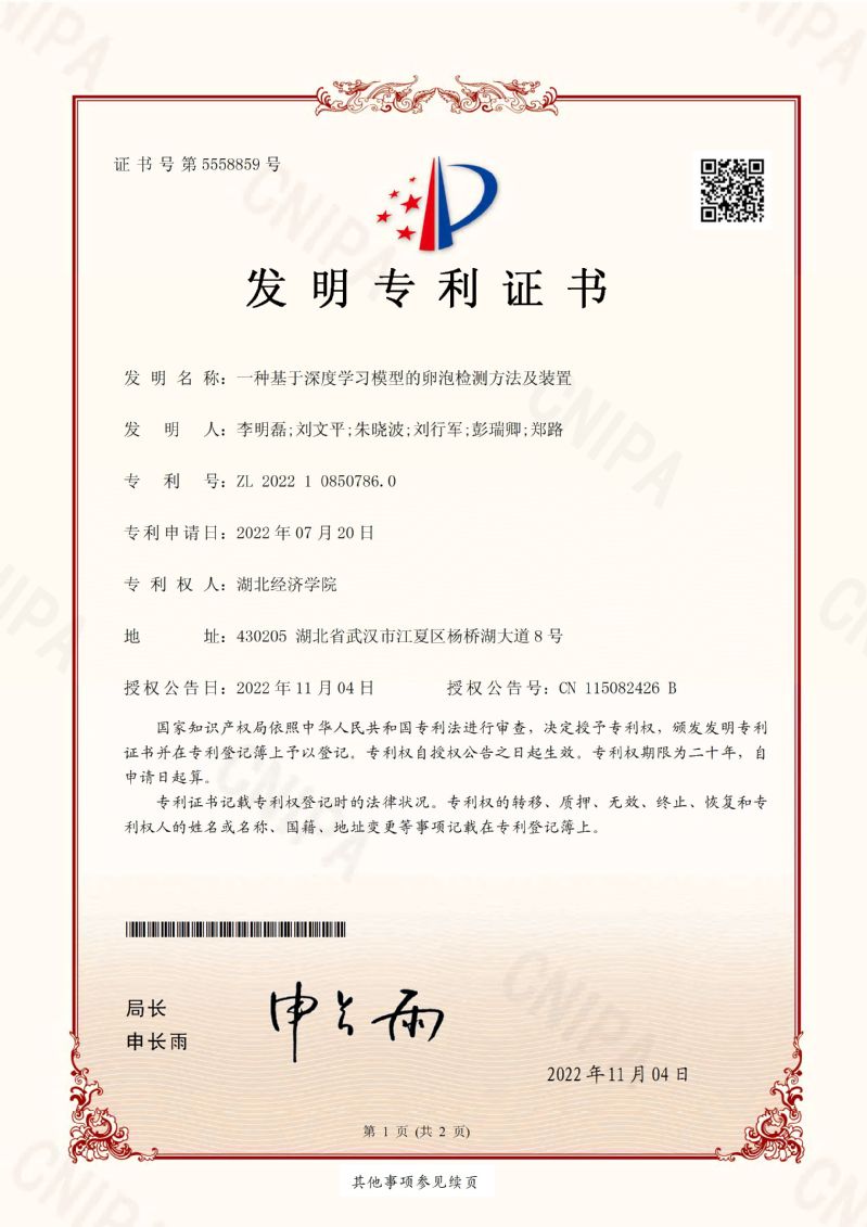 近日,由公司教师申请的国家发明专利获国家知识产权局授权,该发明专利题目为“一种基于深度学习模型的卵泡检测方法及装置”。该发明公开了一种基于深度学习模型的卵泡检测方法及装置,属于医学图像数据处理领域。本发明通过将待检查对象的卵巢三维超声图像、电子病历文本和检验报告输入至训练好的深度学习模型,所述深度学习模型分别提取向量化后电子病历文本的文本特征、预处理后三维超声图像的图像特征、二值化后检验报告的特征,并对提取到的三类特征进行融合,得到多源异构数据特征图,最终能够自动识别出三维超声图像中所有卵泡的位置和大小信息。该发明不仅使用三维超声图像,还充分利用检查对象的电子病历和检验结果等信息,对三维超声图像中的卵泡进行目标检测,能够提高对卵泡检测的准确率。