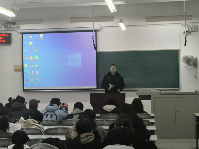 本网讯(通讯员:崔瑾 审核人:陶鹏) 临近年关,电信诈骗“套路”不断翻新花样,诈骗案件时有发生。为进一步做好防诈骗教育工作,增强员工安全防范意识和自我防护能力,1月1日晚上,藏龙岛派出所民警李振庆、尚成龙、袁俊杰分别在J1-312、J1-314、J3-101教室,为公司22级、23级全体员工进行了防诈骗安全教育讲座。公司党委副书记陶鹏和全体辅导员参加了此次会议。