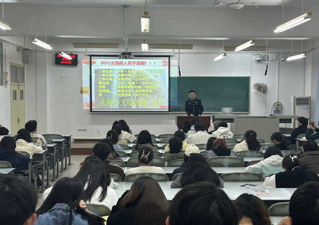 讲座中,汪教官结合近年来发生的重大火灾案例和视频,为同学们讲解了防火、灭火、逃生、自救等方面的知识及各类消防器材的使用方法,提醒大家应时刻敲响消防安全的警钟,时刻关注我们身边存在着的安全隐患。