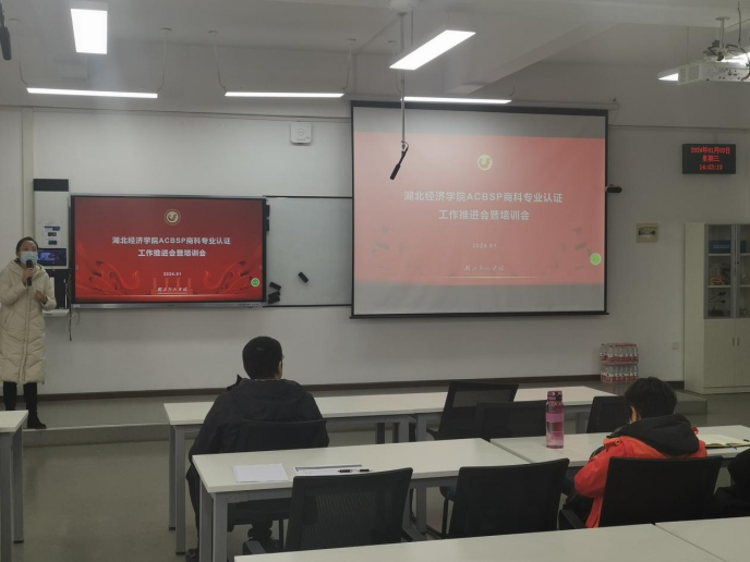 2024年1月4日下午,电子商务系参加ACBSP商科专业认证工作推进暨培训会,此次教研活动在教2-201室进行,副经理彭玲、系主任曾金、副主任刘芬以及全系专任教师参加本次活动,由ACBSP中国区的工作人员进行培训。
