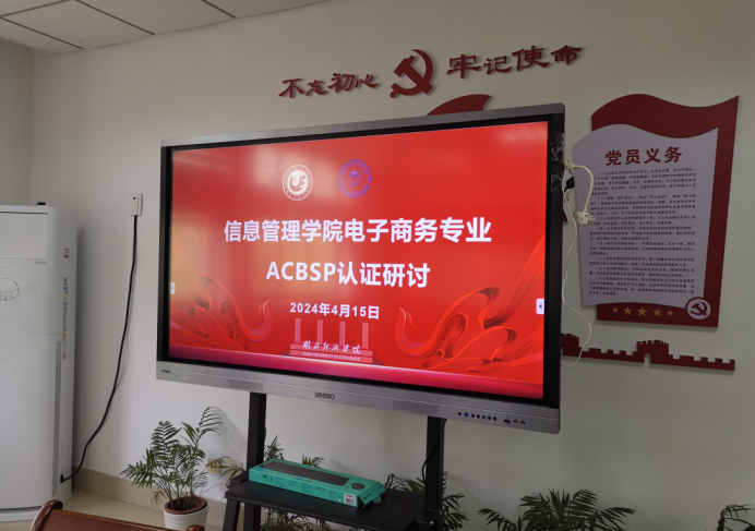 2024年4月15日上午,电子商务系参加ACBSP商科专业认证工作推进暨培训会,此次教研活动在知行楼208A会议室进行,系主任曾金、副主任刘芬以及骨干教师参加本次活动,由ACBSP中国区的工作人员进行培训。
